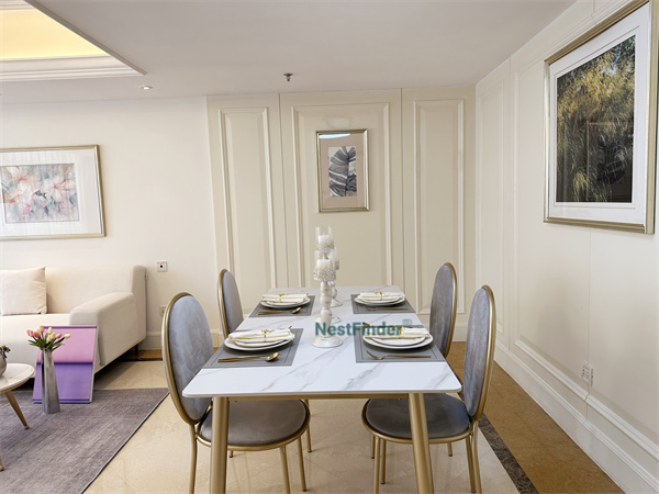 走出私享空间,公寓的超大公共区域同样令人惊艳。欧式双花园,以经典的园林设计手法,融合了喷泉水系,营造出一种静谧而优雅的氛围。漫步其中,仿佛置身于欧洲贵族的庄园,每一次呼吸都充满了自然的气息。此外,公寓还配备了高端餐厅与水吧,无论是商务宴请还是私人聚会,都能在这里找到合适的场所,享受美食与社交的乐趣。